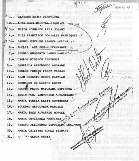 Lista encontrada en casa de un ex agente DINA