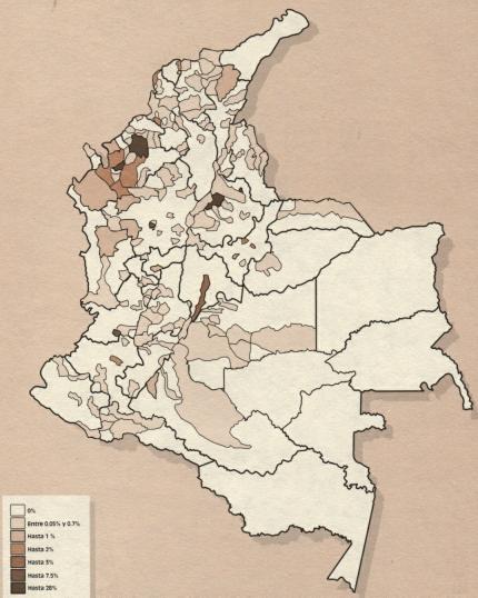 Cuadro 2. Población desplazada por violencia en 1996 según departamento de llegada Departamento % Guajira 0.33% Cesar 2.67% Magdalena 1.79% Atlántico 3.97 % Bolívar 3.40% Sucre 3.03% Córdoba 6.35% Antioquia 19.6% Chocó 2.07% Risaralda 030% Quindio 0.46% Caldas 0.93% Boyaca 4.77% Cundinamarca 27.28% N. de Santander 0.99% Santander 7.42% Nariño 0.40% Valle 5.24% Cauca 2.41% Tolima 1.26% Huila 0.46% Caqueta 1.67% Putumayo 0.33% Arauca 0.72% Casanare 0.34% Meta 1.25% Guanía 0.37% Total 100% Fuente: Codhes-Sisdes.