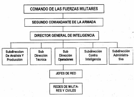 Para una noción más amplia del funcionamiento de la inteligencia en Colombia, el lector puede apreciar en la página un cuadro en el que se muestra su estructura de mando.