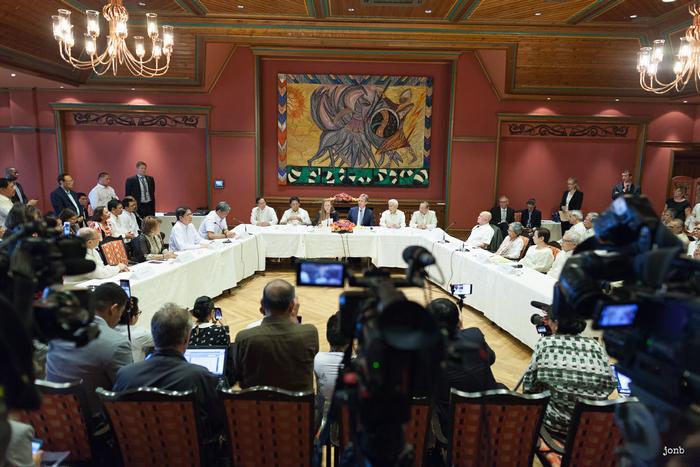 "We cannot achieve this successful and very significant step forward in the peace negotiations without the strong commitment of President Rodrigo Roa Duterte, the spirit of goodwill and friendliness of our counterparts: the GRP Negotiating Panel, its Chairperson Silvestre H. Bello, the panel members and other members of their delegation," said Luis Jalandoni, Chair of the NDFP Negotiating Panel, in his closing statement.