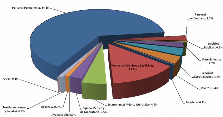 Este gráfico muestra claramente que la ejecución del presupuesto del Hospital Escuela supera los montos aprobados originalmente, evidenciando la falta de procesos de formulación presupuestaria. También puede verse que en el periodo en curso (2012), al 24 de julio se había ejecutado el 66.5 % de los recursos, siendo esta una realidad crítica, ya que en ese periodo debería haberse ejecutado únicamente el 58.3 % y nos arrojará un déficits para concluir el año; además demanda la necesidad de un presupuesto real.