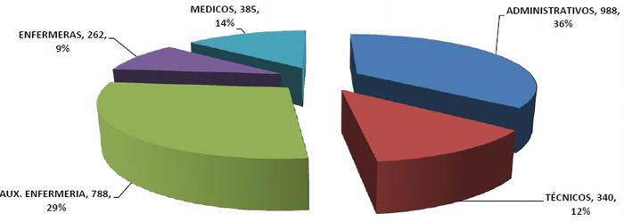 Actualmente el Hospital escuela cuenta con 2,763 empleados, de los cuales el personal administrativo representa el 36% y los médicos apenas el 14%, lo que refleja una distorsión del quehacer fundamental del Hospital.