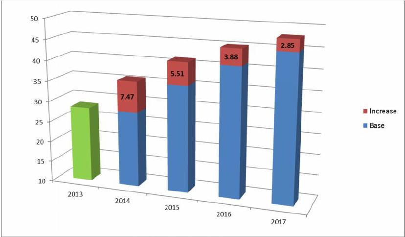 The table hereunder provides an overview of the hoped for increases based on the present assumptions about our workload and the consequences of the new strategy.