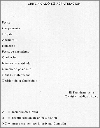 Los casos de neurosis de cautiverio, que no se curen al cabo de tres meses de hospitalización en país neutral o que, tras ese plazo, no estén en franca vía de curación definitiva, serán repatriados.