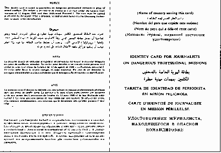 Identity Card for Journalists on Dangerous Professional Missions Database 'IHL - Treaties & Comments', View 'FULL'![]()